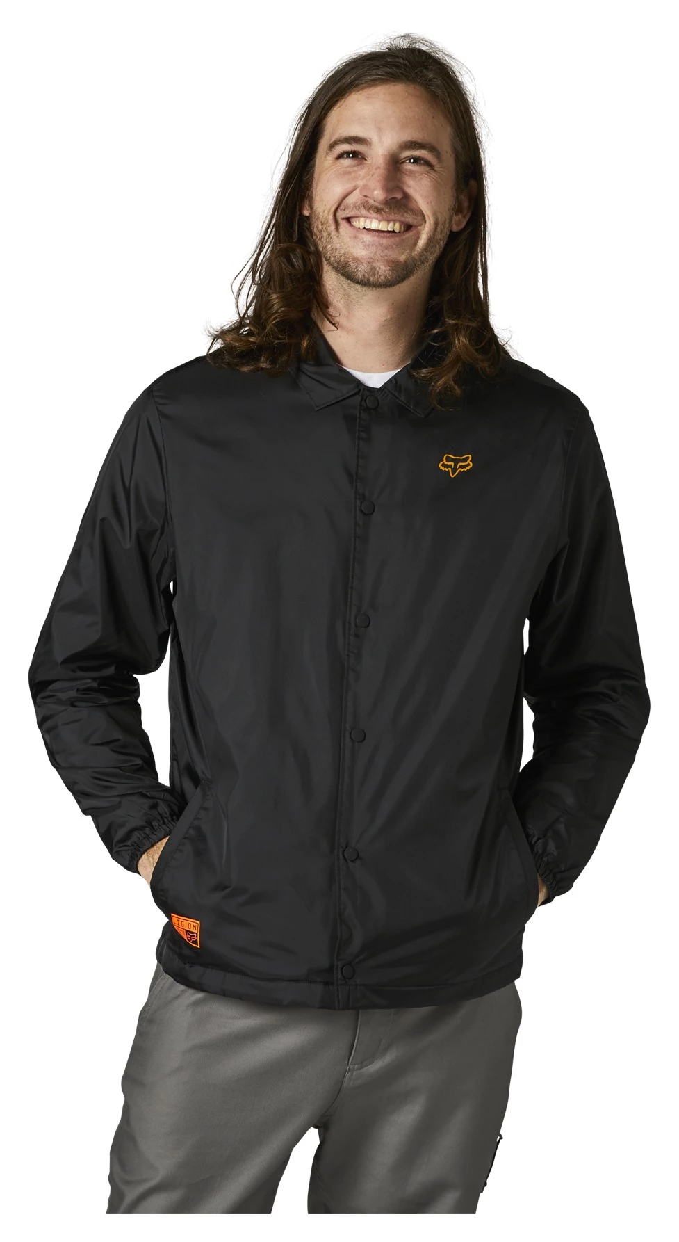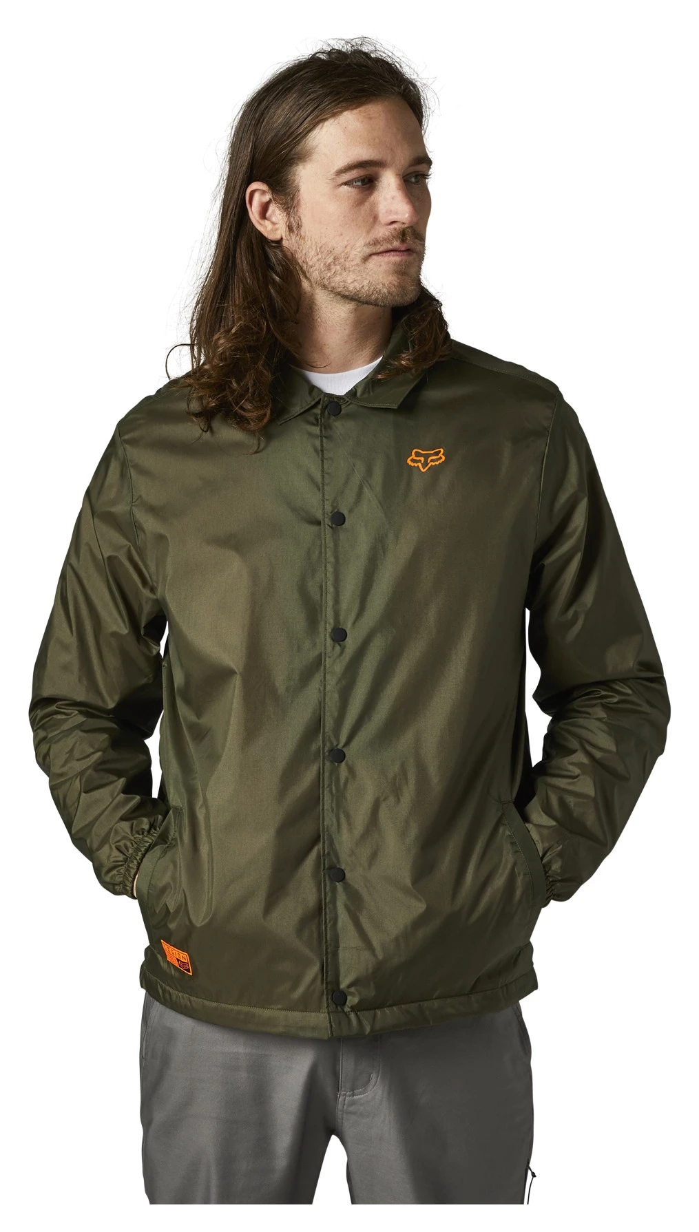 The lightweight Fox Racing Dirt Coaches Jacket with durable water repellent coating keeps wind and light rain off you in gloomy weather.
