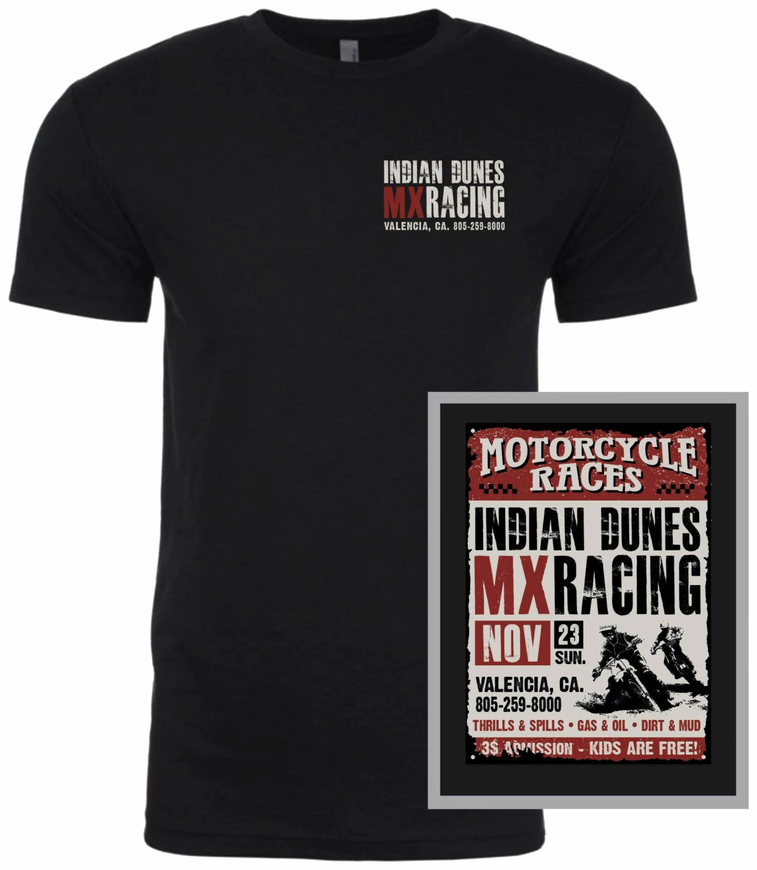 In the early 1970’s the Indian Dunes park was the moto mecca for riders in California, from amateurs to all stars the dunes had something for everyone. The Indian Dunes Sunday T-Shirt brings to mind days of getting dirty on the track and beating your buds to the finish line. Not a cell phone in sight, just acres of tracks to rip around under the summer sun.