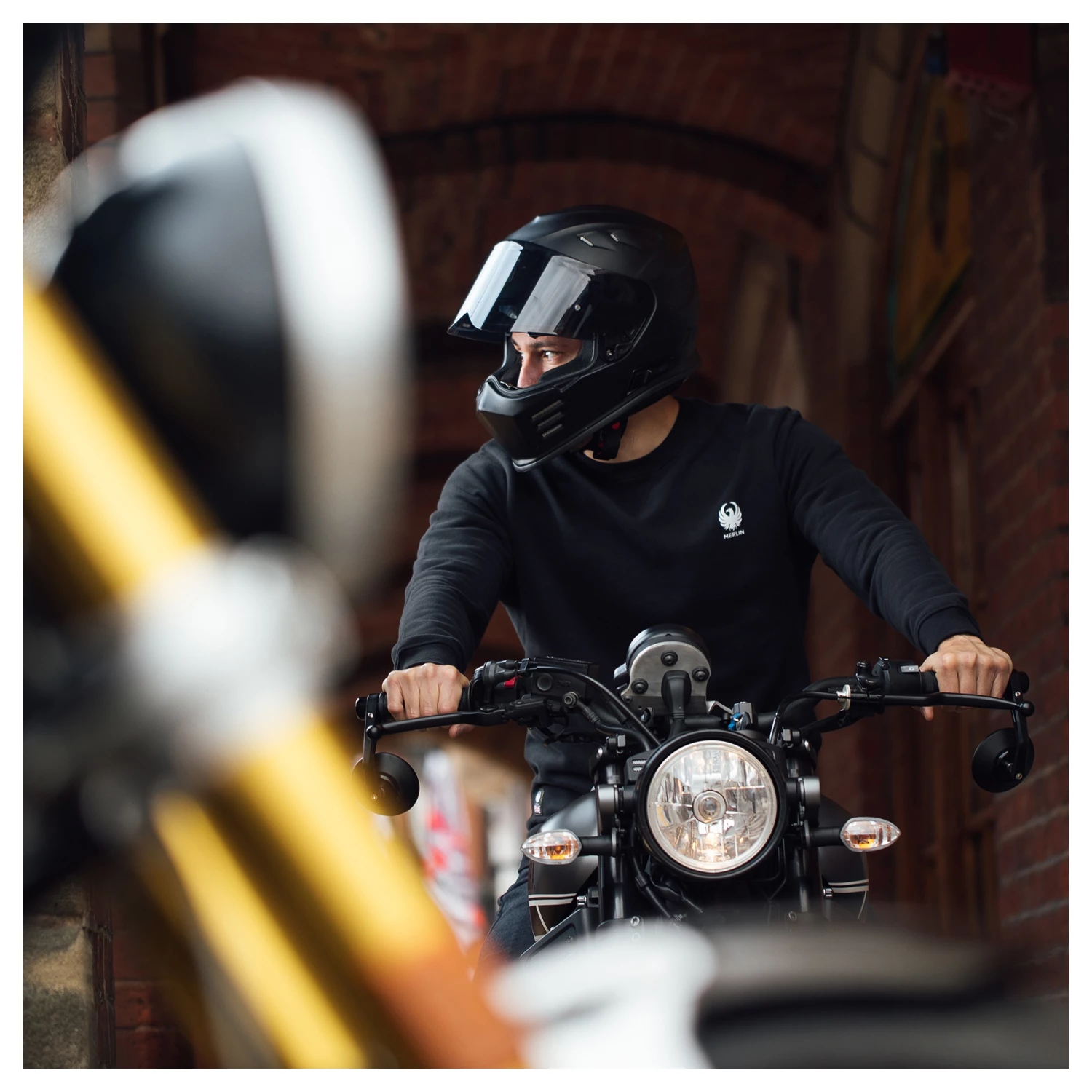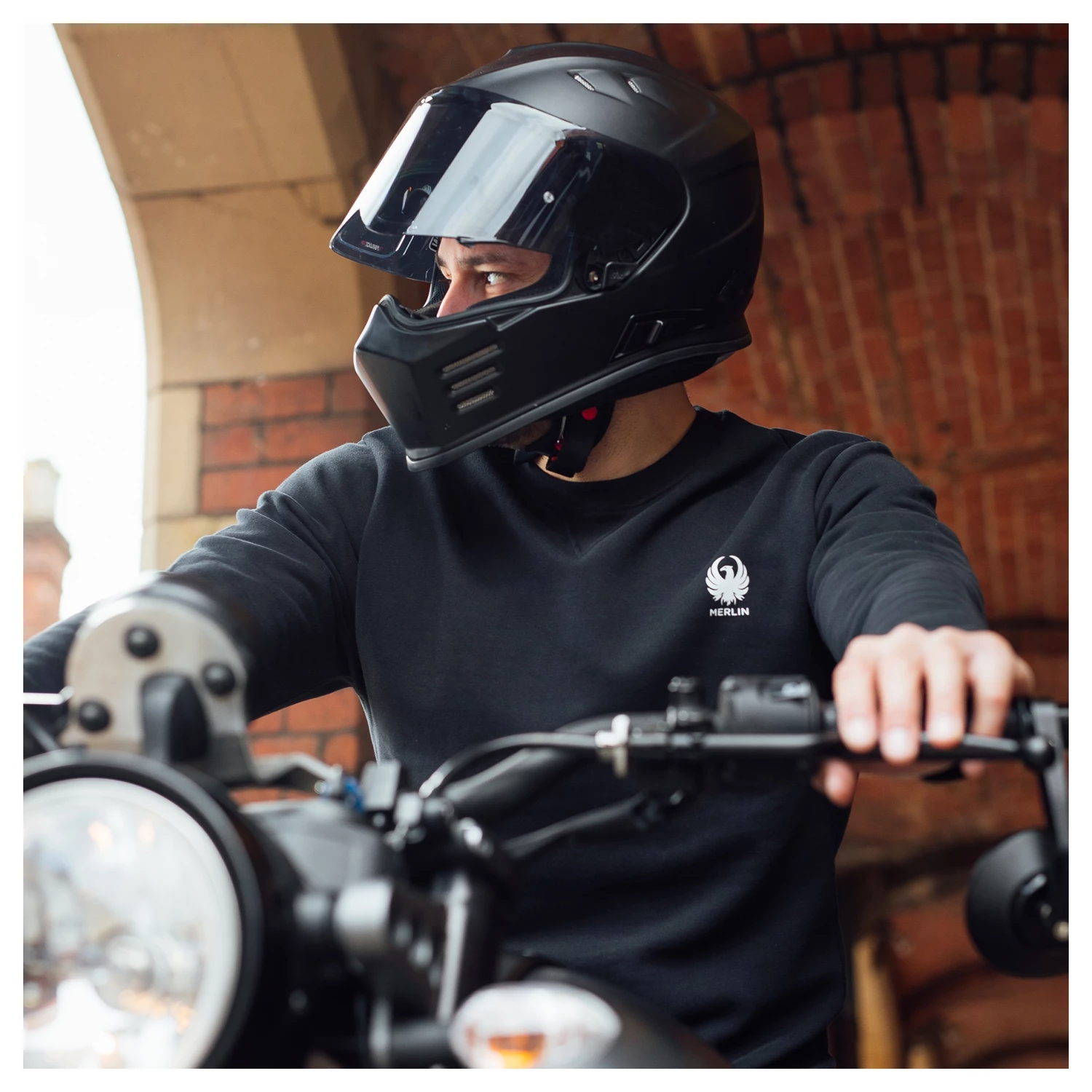 - Contrasting colored Merlin branding on the chest