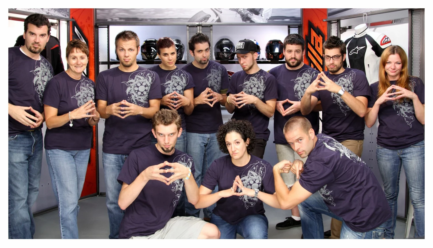 Lovingly concocted in 2007 and named “El Moto Diablo” for its geared theme and devilish lines, the RevZilla Staff Tee Shirt has been part of our lineup from the beginning. It’s also the “same blue shirt in every video” that Anthony has been rocking since Day One of RevZillaTV on Youtube. People love to point out that Anthony doesn’t ever change his clothes. I guess when it works you stick with it.